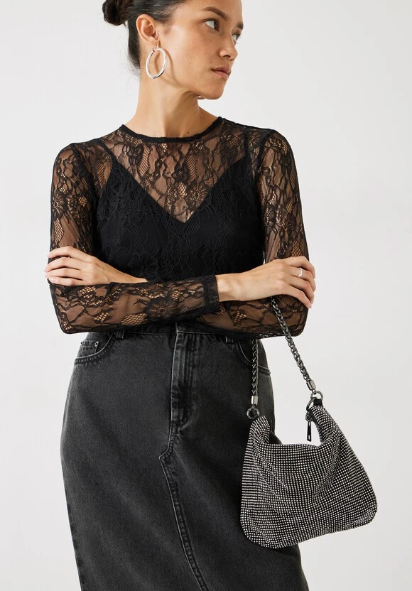 Chain handles and slouchy, pouch-style silhouettes are trending right now when it comes to accessories. Which is why we combined both for our Alma bag. And in a nod to the noughties, we’ve covered it in tiny gem embellishments for a dose of sparkle that makes any outfit party-ready.