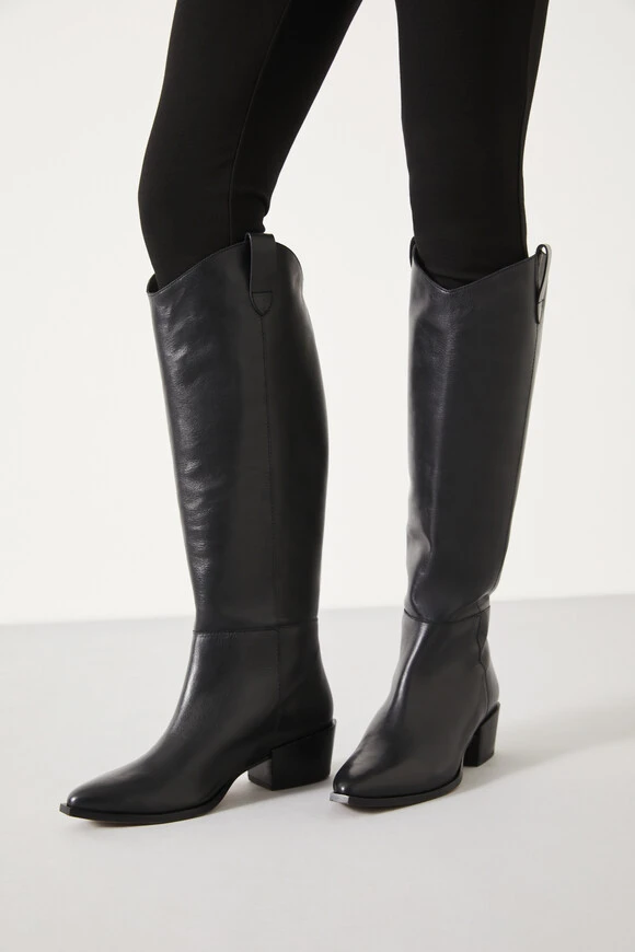 Our love affair with Western boots isn’t ending anytime soon. Enter Hailey: our sleek take on the cowboy silhouette that nods to the trend without going full country girl. We’ve made them from smooth pull-on leather and propped them up on block heels with squared toes. The best part is, you can wear them with anything.
