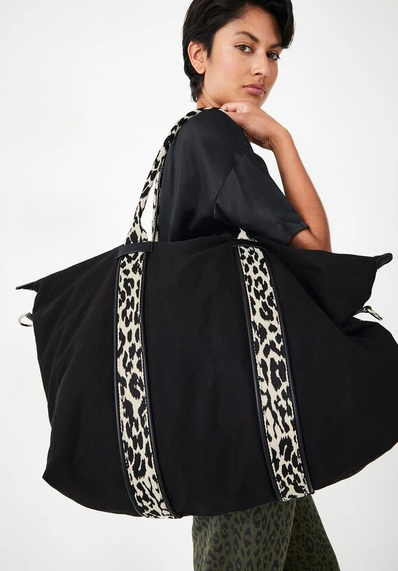 Our Ingham holdall is a bestseller for a reason. It’s the perfect weekender bag, with plenty of space for a couple of outfits, toiletries and everything else we need for a few days away. This season, we’ve updated it with monochrome leopard print straps. Carry it with the twin top handles, or attach the shoulder strap for if you’re someone who struggles to pack light.