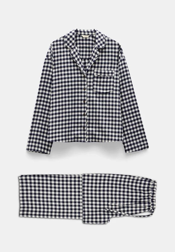 Feeling the chill? Then slip into this two-piece PJ set. It’s made from a cosy brushed cotton that’s got curling up on the couch written all over it. Well, not literally – that’s actually a classic gingham check print.