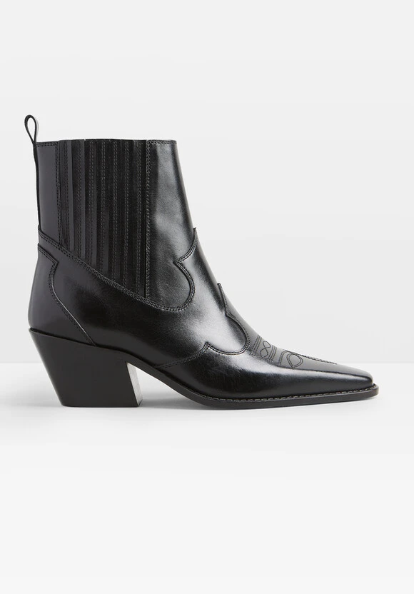 Classic cowboy boots are everywhere this season. And we’ve created a sleek, grown-up take for our latest collection, crafting our Kendall boots from smooth leather. Note the style’s western inspiration coming through in the angled block heel and tonal stitching at the cuff.