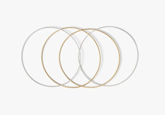 Made from a mix of gold and silver-plated brass, our solid Lyrah bangles can be slipped on solo as an instant stack, or layered up with chunkier styles and beaded bracelets. Transition them through the seasons by letting them peer out from under full-length cuffs instead of summer’s cropped sleeves.