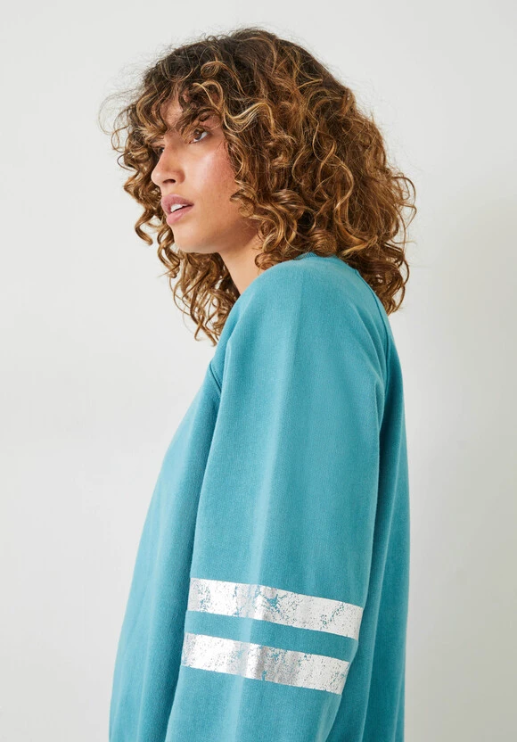 Comfy cotton and streaks of metallic? Consider this a levelled-up take on your staple sweatshirt. All the classics are still in place, too: crewneck collar, ribbed trims and soft, slouchy silhouette. But this version will take you past the parameters of your couch. That’s a win-win.