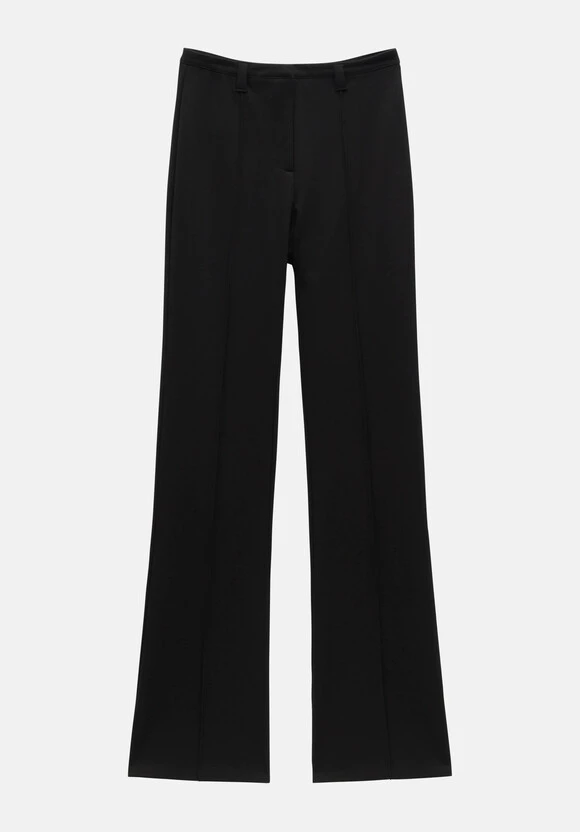 Flared silhouettes are having a moment. This pair is cut from a stretchy fabric for a slim fit up top, before flaring out into ultra-wide cuffs slashed with a subtle split at the back. We think they look great layered over boots, trainers or heels.